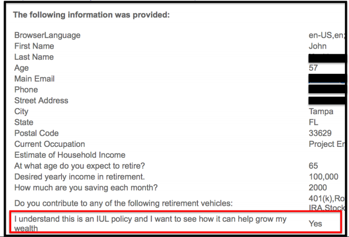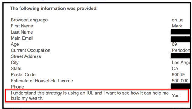We receive examples like this monthly… and with the knowledge that you will receive in the Insurance Mavericks Double Your Leads Dossier... you will be able to create your own pre-educated leads system….